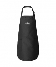 Full-Length Apron made of 7.5 oz., 55 % cotton / 45% polyester. Measures 22" W x 30" H, and has two patch pockets. It also features an adjustable neck strap with a buckle and waist side ties.