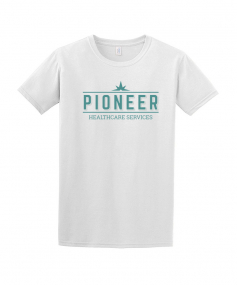 Made of 4.5 Oz., pre-shrunk 100% SoftStyle cotton. Features double-needle stitched neckline and sleeves, quarter-turned, 3/4" seamless collar.