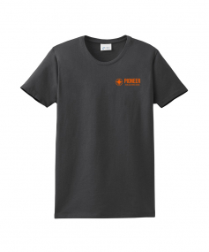 6.1 Oz. 100% Soft Spun Cotton. 98/2 Cotton/Poly (Ash). 90/10 Cotton/Poly (Athletic Heather). Shorter Cut Through The Body And Sleeves For A More Feminine Fit.