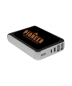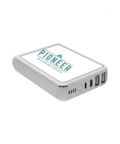 Practical and stylish, this high-capacity power bank is ready to charge you up. Loaded with three USB outputs, a 3.1 amp charging speed, and a 10,400mAh battery capacity, it charges up to three devices at once to completion with room to spare. Its full-color imprint area is the perfect space for your brand to make its statement. Copy that? Ten four.