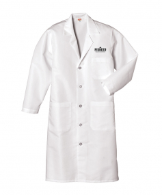 Our IL50-strength lab coat has side vent openings to allow you access to your clothing. 5-Ounce, 80/20 poly/combed cotton performance blend poplin with one-piece, lined, notched lapel. Left chest patch pocket with bartacked pencil stall. Features two lower pockets and 5-button closure.